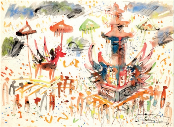 Karya lukis I Nyoman Gunarsa yang berjudul “Upacara Adat Bali” merupakan ekspresi bentuk imajinasi, karena bergaya naturalis dan realis.
